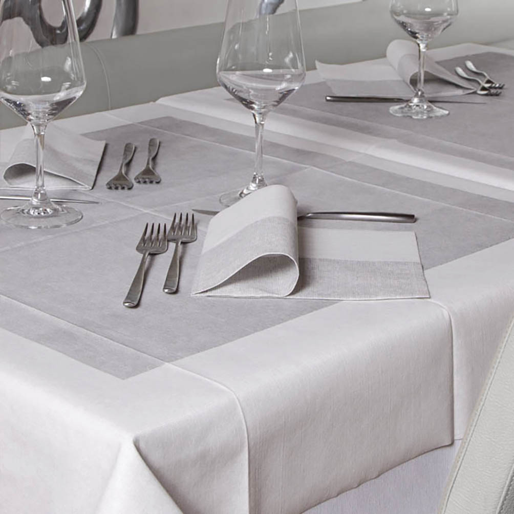 This Italian-crafted tablecloth features a two-tone grey design that subtly splits the surface into light and mid-grey sections. The result is a look that feels intentional, clean, and effortlessly stylish.