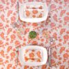 Crafted from premium airlaid paper, this tablecloth combines the look and feel of linen with the ease of single use. With soft white backing and delicate orange floral prints, it’s an instant way to brighten up any tablescape.